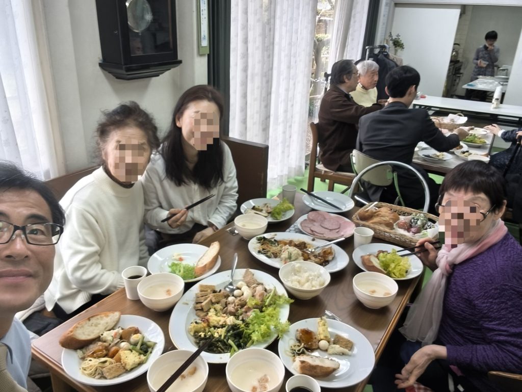 礼拝後には、お待ちかねの「持ち寄り祝会」を開催。テーブルいっぱいに並んだ手料理を囲み、文字通りお腹も心もいっぱいに満たされる、笑顔あふれる時間となりました。久しぶりに礼拝に来られた方々もいて嬉しかった!