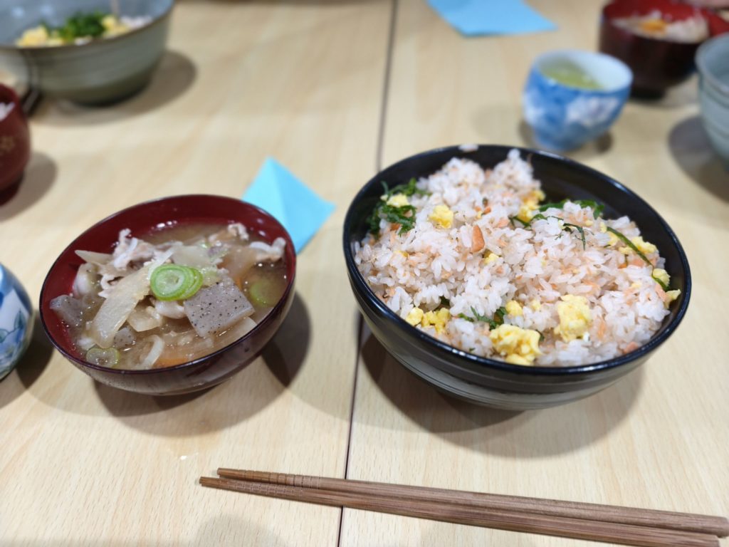 私は最初から大盛りだったのですが、近くに座った女性たちから「食べきれないから」とさらにごはんを盛られて高校球児の丼飯レベルになりました(おにぎり換算5個分にはなったと思います)。