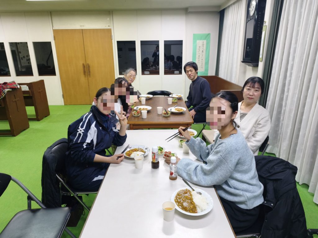 中高生会は、30分ほどの礼拝をした後、分級(聖書研究)、夕食、ゲームという流れで午後6時から9時まで教会で楽しく過ごしています。